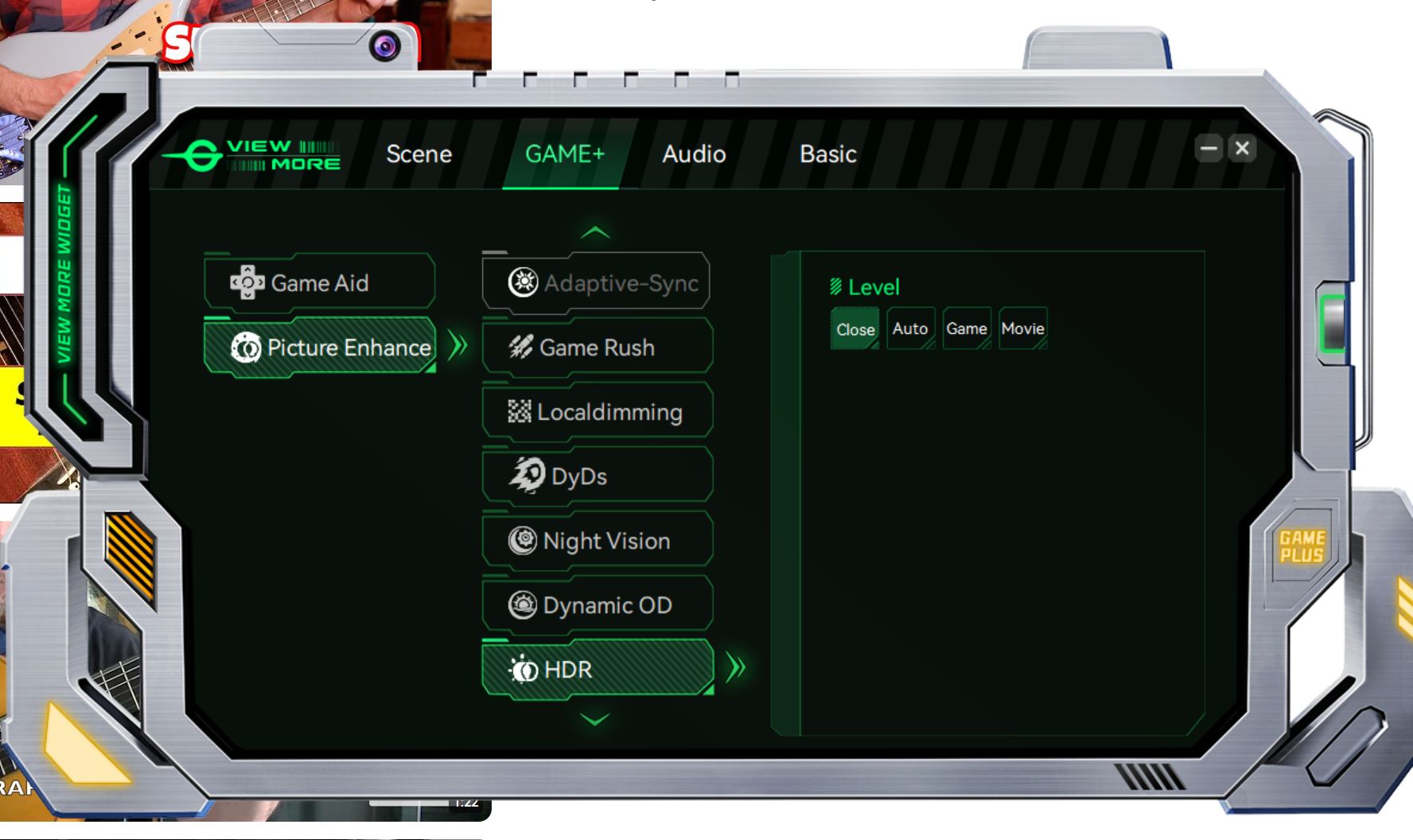 - RTS/RPG-läge: förstärker mellantonerna för att göra det lättare att upptäcka kartdetaljer