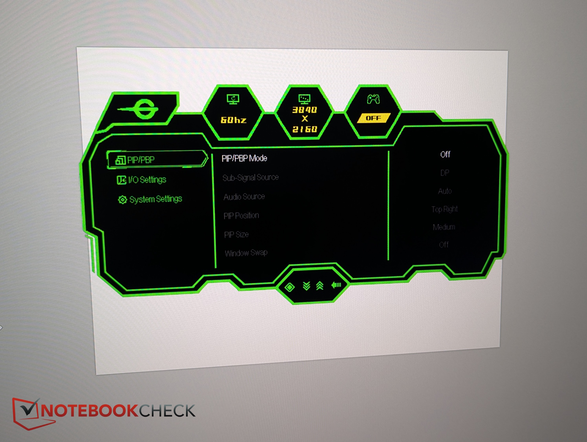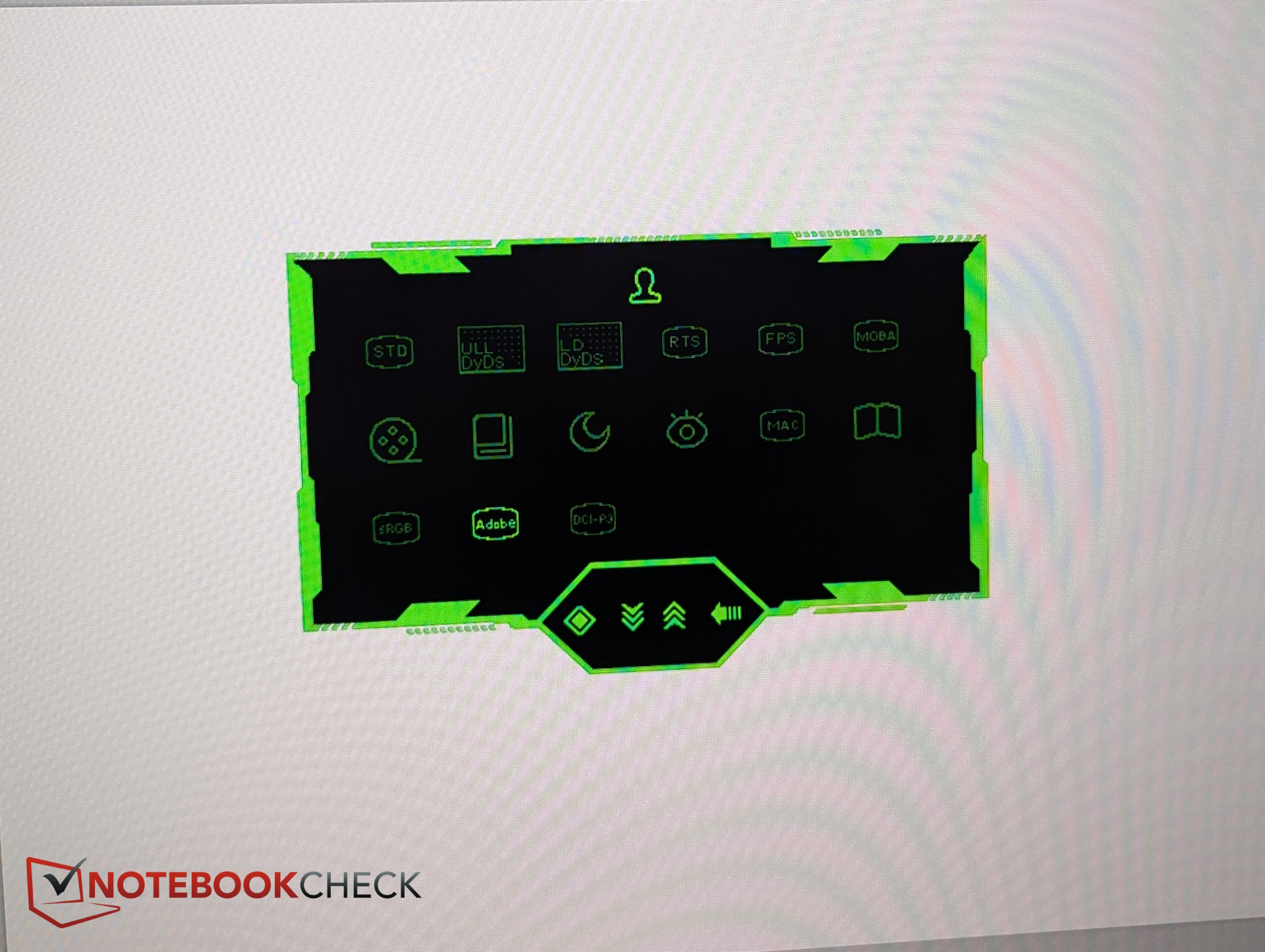 OSD innehåller 15 förinställda bilder. Dessa täcker färgrymder som sRGB, DCI-P3 och AdobeRGB, samt spelspecifika lägen som t.ex: