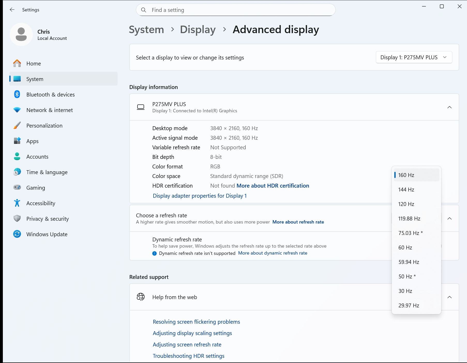Det dubbla läget är helt klart höjdpunkten. Vid inbyggd 4K-upplösning körs monitorn med upp till 160 Hz. Växla till 1920 × 1080, och uppdateringsfrekvensen hoppar till 320 Hz.