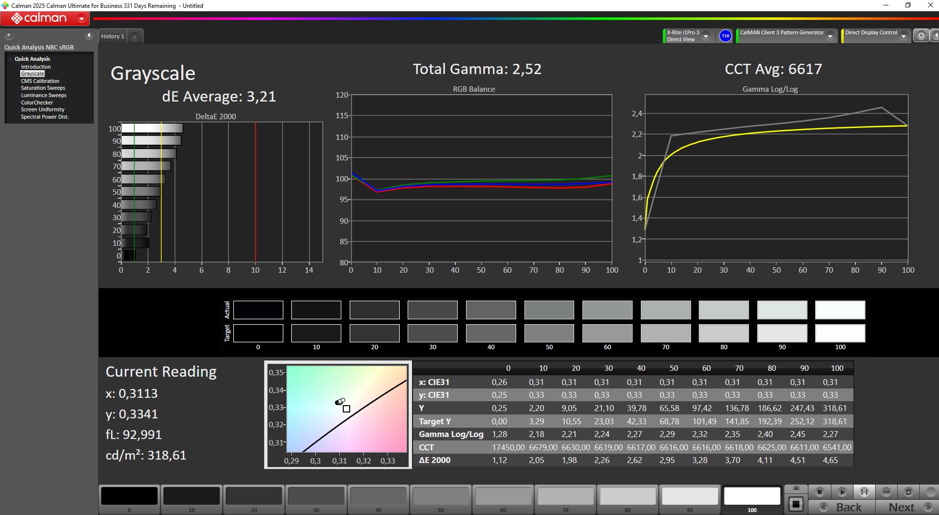 ΔE Greyscale Calman: 3.21 | ∀{0.09-98 Ø5}