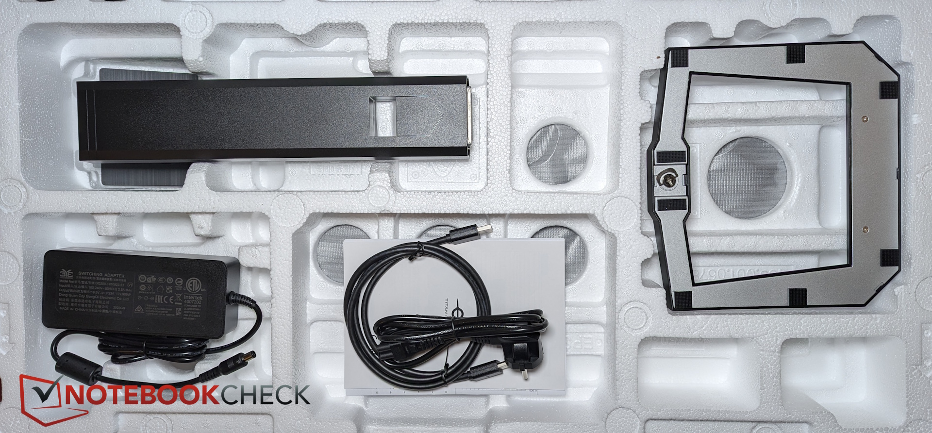 I förpackningen ingår en DisplayPort-till-DisplayPort-kabel. Den externa strömförsörjningen är dock ganska stor.