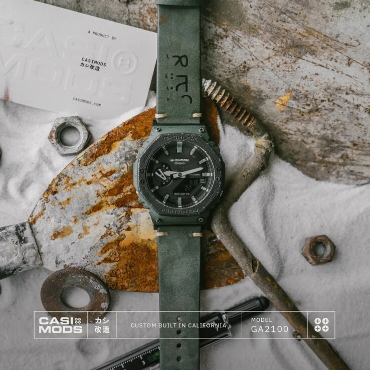 Inspirerad av post-apokalyptisk och Dune-estetik, denna GA-2100 mod (igen, av CasiMods) tar robust anpassning till en annan nivå. Med ett kraftigt väderbitet fodral, metallskruvar och ett slitaget grönt armband förkroppsligar den på ett lämpligt sätt det slitna, stridshärdade utseende som Benson C. siktade på. Boettens detaljer och urtavlans modifieringar gör att klockan förblir läsbar samtidigt som den behåller sin Mad Max-inspirerade känsla. Resultatet är en unik klocka som sticker ut med både funktionalitet och rå, överlevnadsinriktad estetik. Tyvärr var detta en 1 av 1-klocka, speciellt designad för en kund.