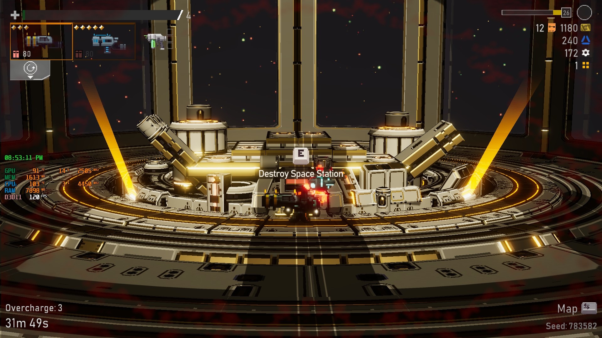 Enligt testarna på Tech-Gaming innebär 360-graders perspektivet i Orbital Bullet inte bara en visuell nyhet - det öppnar också upp för nya strategiska möjligheter. Projektilerna följer den cirkulära strukturen i nivåerna, som är uppbyggda kring en central kärna och länkade till ytterligare etapper via ziplines eller teleporterare. Utöver det är spelet fortfarande fast förankrat i roguelike-traditioner: procedurellt genererade banor uppmuntrar spelarna att gå så långt som möjligt innan de börjar om efter varje nederlag. Framstegen är dock inte helt förlorade - nanobytes som samlas in längs vägen kan bytas ut mot permanenta uppgraderingar.