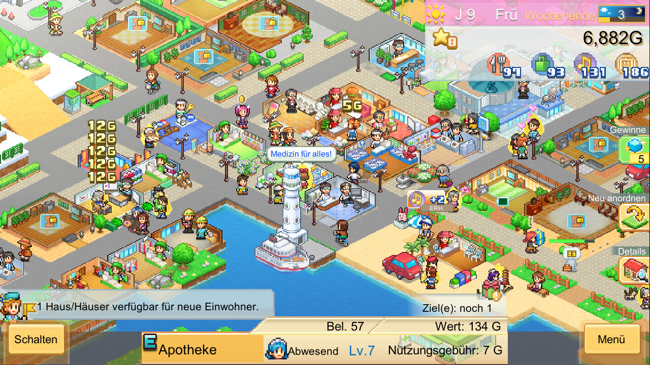 När det gäller gameplay blandar Dream Town Island stadsbyggnad med livssimulering och förvaltningsmekanik. Spelare kan låsa upp nya byggnader genom forskning, öka effektiviteten genom att kombinera strukturer och utforska sidoaktiviteter som aktiehandel eller husdjursuppfödning. Svårighetsgraden förblir avslappnad hela tiden - misstag är lätta att återhämta sig från och spelet känns sällan krävande. Men i takt med att staden växer ökar också komplexitetsnivån, vilket ger en stadigt djupare upplevelse.