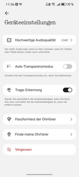 Men det finns också svagheter: batteritiden med ANC aktiv är bara genomsnittlig (ca 5,5 timmar), och när du använder LDAC + ANC minskar den ännu mer. ANC i sig, särskilt i blåsiga eller mycket bullriga miljöer, är inte alltid helt övertygande. Sammantaget levererar dock Ear (3) ett sammanhängande helhetspaket.