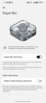 När du ringer samtal i tysta miljöer levererar Nothing-hörlurarna en hyfsad prestanda. Men i livligare miljöer når de snabbt sina gränser. Det är här Super Mic kommer in i bilden: den är optimerad främst för röst- och videosamtal och fungerar med populära appar som Zoom, Teams, Google Meet, WhatsApp och WeChat. För inspelning stöds den av inbyggda röstmemo-appar (t.ex. iOS Voice Memos) och videoappar från tredje part, t.ex. Blackmagic. Den är inte optimerad för röstmeddelanden i appen (t.ex. WhatsApp, WeChat, Snapchat) eller vanlig videoinspelning på Android / iOS, där smarttelefonens mikrofoner används istället. Under telefonsamtal reducerar den extra brusreducerande mikrofonen i fodralet omgivande ljud till ett minimum, och den stora röstmikrofonen garanterar utmärkt klarhet och är idealisk för kommunikation.