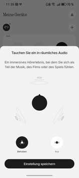 Appen kan bland annat användas för att installera firmware-uppdateringar, välja önskad ljudcodec och använda fördefinierade eller anpassade equalizers. Den ger också möjlighet att konfigurera spatialt ljud, Super Mic, brusreducering, transparensläge och in-ear-kontroller enligt dina önskemål.