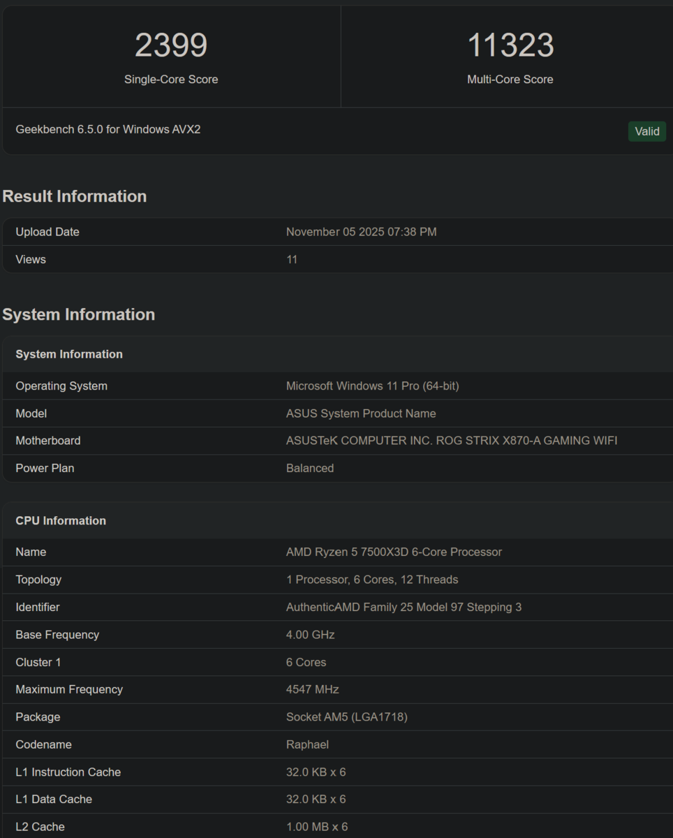 Ryzen 5 7500X3D får 2 399 och 11 232 poäng i Geekbenchs enkel- och flerkärniga tester med en boostklocka på 4,6 GHz. Dess prestanda är mer eller mindre i nivå med den redan släppta Ryzen 5 7600X3Doch i den verkliga världen kanske skillnaden mellan de två inte uppgår till mycket. Oavsett vilket ger det ytterligare ett alternativ för kostnadskänsliga marknader.