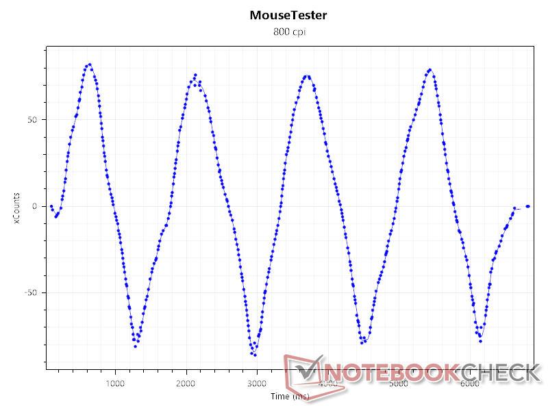 Vid lägre DPI-värden har Duckbill Ultras sensor inga problem med att räkna inmatningar, vilket visas av den jämna sinuskurvan. Men när värdet fortsätter att öka blir grafen mer oregelbunden på grund av en rad olika faktorer, t.ex. att sensorn når sin fysiska gräns och små ojämnheter på testytan.