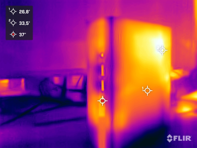 Acemagic AD15 har inte vid något tillfälle några problem med höga temperaturer. Chassit värms bara upp något, och vi ser bara högre temperaturer i området för fläktventilen i baksidan. DenIntel Core i7-11800Hnår sin högsta temperatur under stresstestet med Prime95, och vi mäter 90 °C (194 °F), så SoC når aldrig den maximala temperatur som anges av tillverkaren. De effektgränser som definieras som PL1 och PL2 uppnås, och särskilt PL1-värdet kan bibehållas konstant på 45 watt. Den maximala temperaturen gäller också bara den korta tidsperiod under vilken SoC kan förbruka 65 watt i det här fallet. Om man tittar på längre tidsperioder ligger processortemperaturen på 70 °C (158 °F).