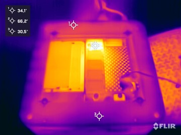 (+) Den maximala temperaturen på ovansidan är 31.5 °C / 89 F, jämfört med genomsnittet av 36 °C / 97 F , allt från 21.6 till 69.5 °C för klassen Mini PC.