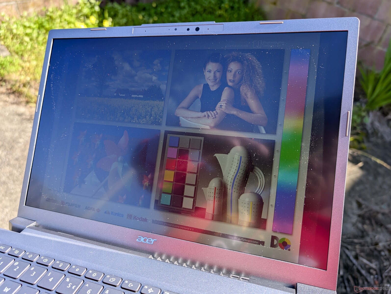 IPS-skärmen på vår Aspire 14 AI tillhör budgetkategorin med sina <60 procent sRGB-färger, låga uppdateringsfrekvens på 60 Hz och medelmåttiga nivåer för ljusstyrka och svarstid. Vår enhet lider också av måttligt hög ojämn bakgrundsbelysning som visas på bilden nedan.