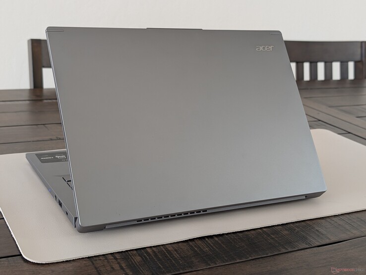 Aspire 14 AI är något större och tyngre än den dyrare Swift 14 AI. Den ser elegant ut i stängt läge tack vare ytterlocket i metall, men den billigare plastbasen blir uppenbar när man använder den bärbara datorn på nära håll. Både chassit och locket är också något mer känsliga för vridning än konkurrenter som HP Pavilion 14 eller Dell Inspiron 14 Plus.
