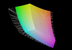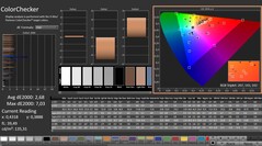Skärmen visar en hyfsad färgåtergivning från fabrik - med en avvikelse på ca 4,7 är målet (DeltaE < 3) inte exakt matchat. En kalibrering minskar avvikelsen till 2,68 och säkerställer mer balanserade gråskalenivåer. Panelen kan helt återge sRGB-färgskalan men inte Adobe RGB och Display P3-färgrymderna.