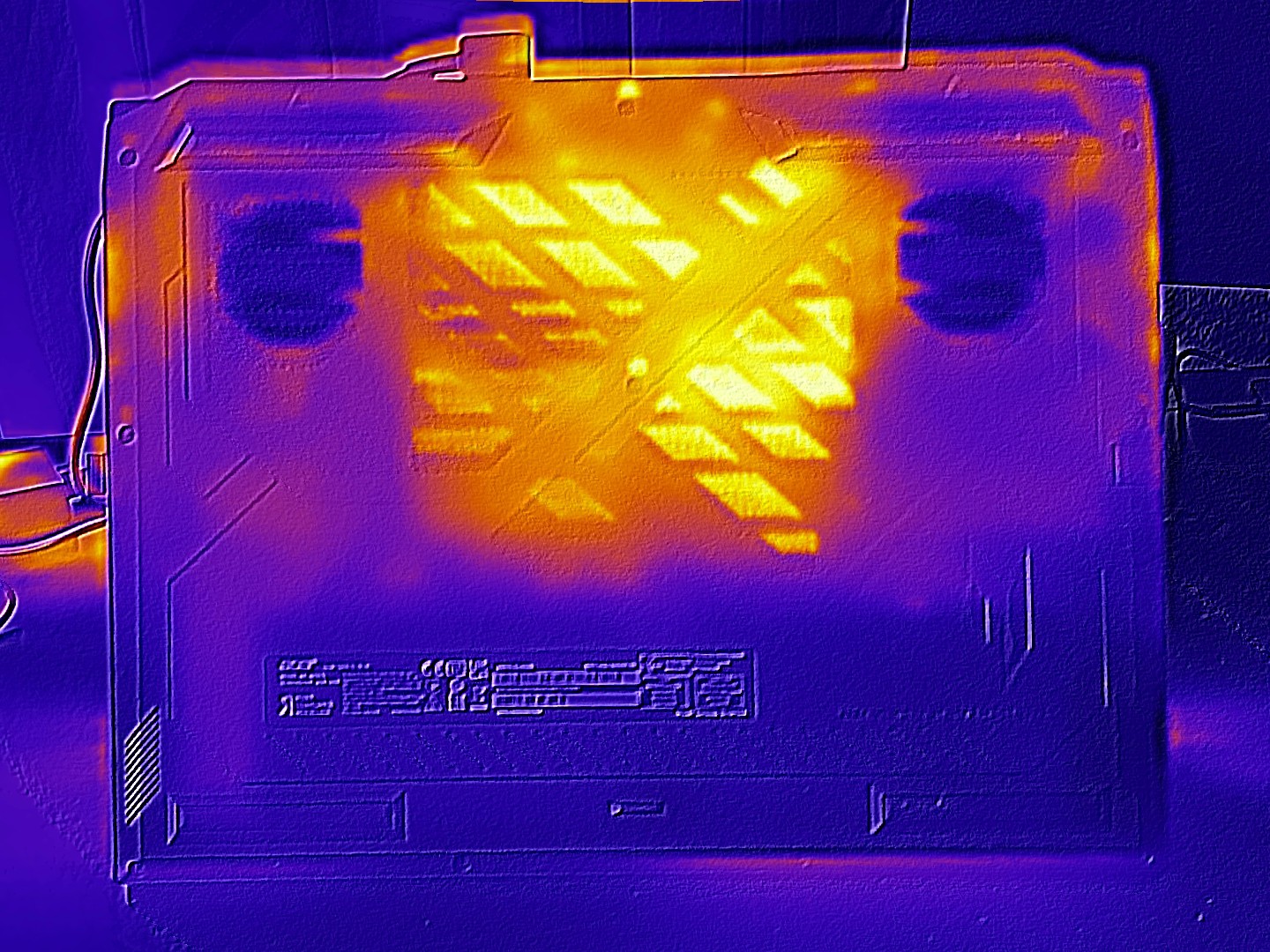 Nitro V 16 kunde ha presterat bättre när det gäller yttemperaturer. Ett maximum på 59 °C i botten av chassit är ganska högt för en enhet med mellanklasskomponenter och passar inte för spelsessioner i knät.