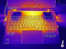 Den bärbara datorn värms upp märkbart: Cyberpunk och stresstestet orsakade temperaturer på över 50 grader Celsius vid flera mätpunkter. Värden över genomsnittet uppnås också under vardaglig användning (kontor, internet). Temperaturerna på handledsstödet ligger ibland i gränslandet.