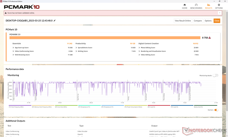 Att köra på batteri begränsar prestandan som förväntat. Ett Fire Strike -test på batterier skulle ge Physics- och Graphics-poäng på 25319 respektive 18778 poäng, jämfört med 41644 respektive 46998 poäng när det är på strömnätet.