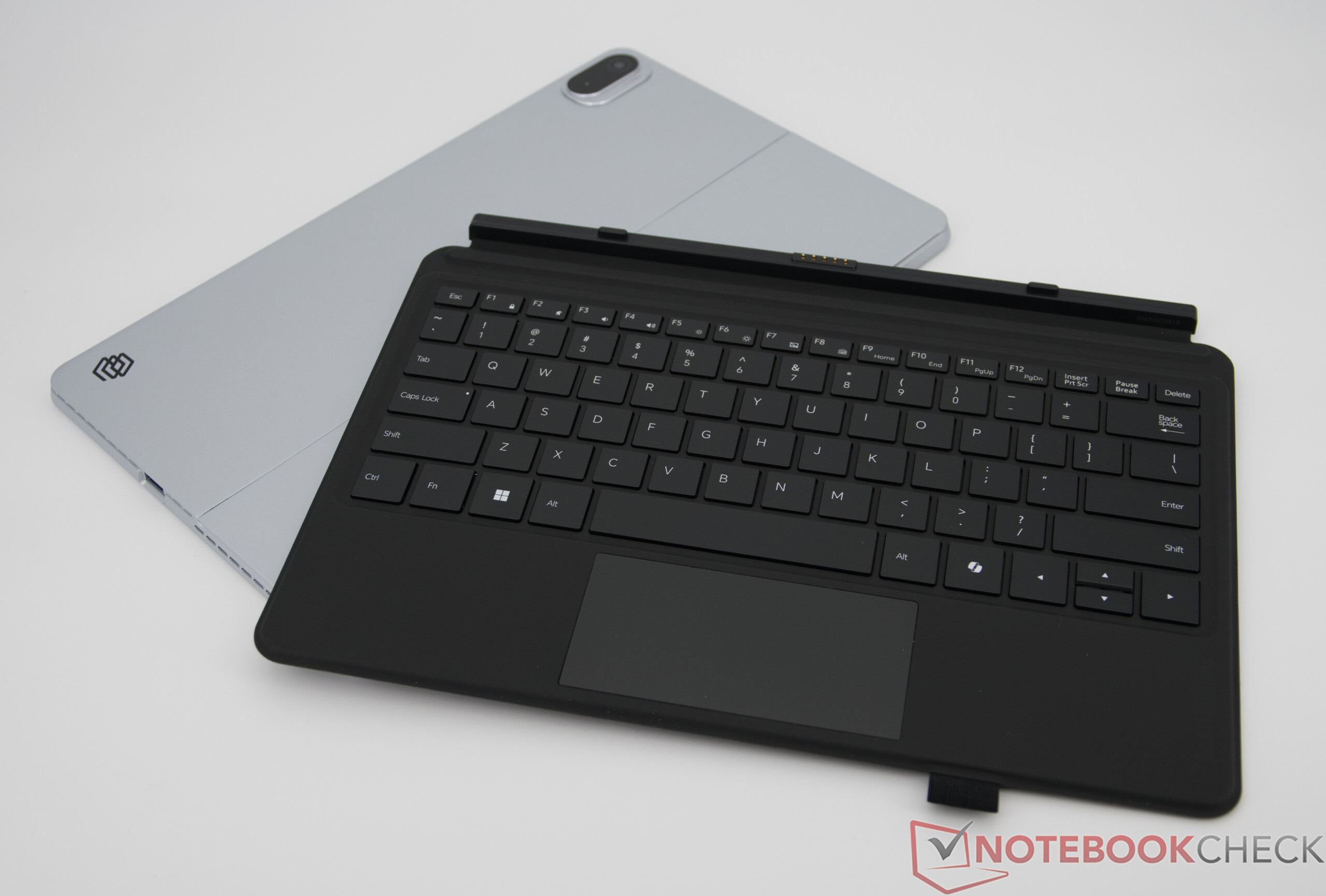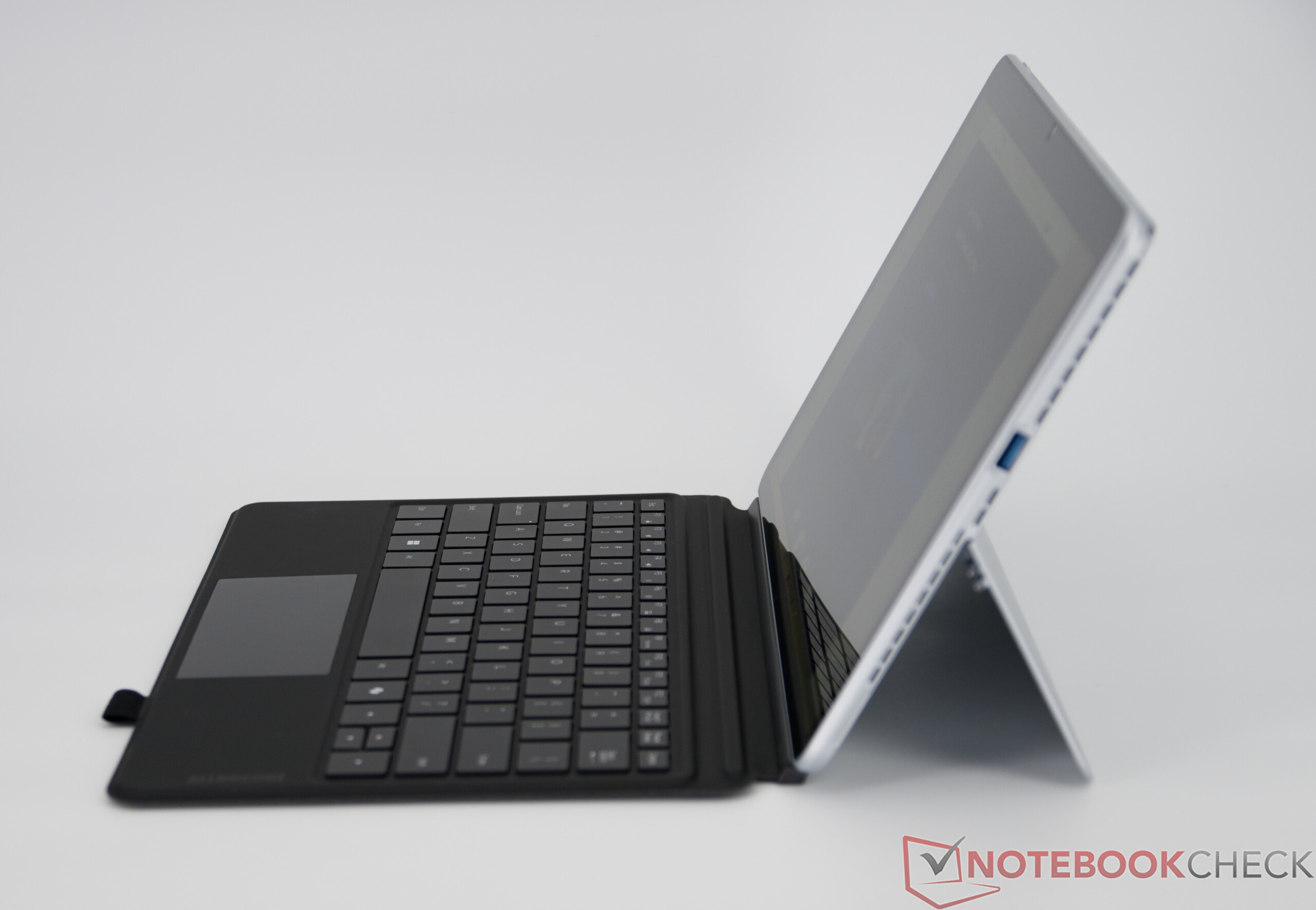 Det valfria tangentbordsskyddet har bakgrundsbelysning, även om tangentrörelsen är ganska grund och inmatningarna är något högre. Sammantaget är skrivkänslan ändå solid och klart trevligare än på ett skärmtangentbord. Det bör dock noteras att endast en engelsk layout finns tillgänglig. Positivt är den vita bakgrundsbelysningen som gör det lättare att arbeta i dåliga ljusförhållanden. Den integrerade ClickPad är ganska liten, men den fyller sitt syfte i vardagligt bruk.