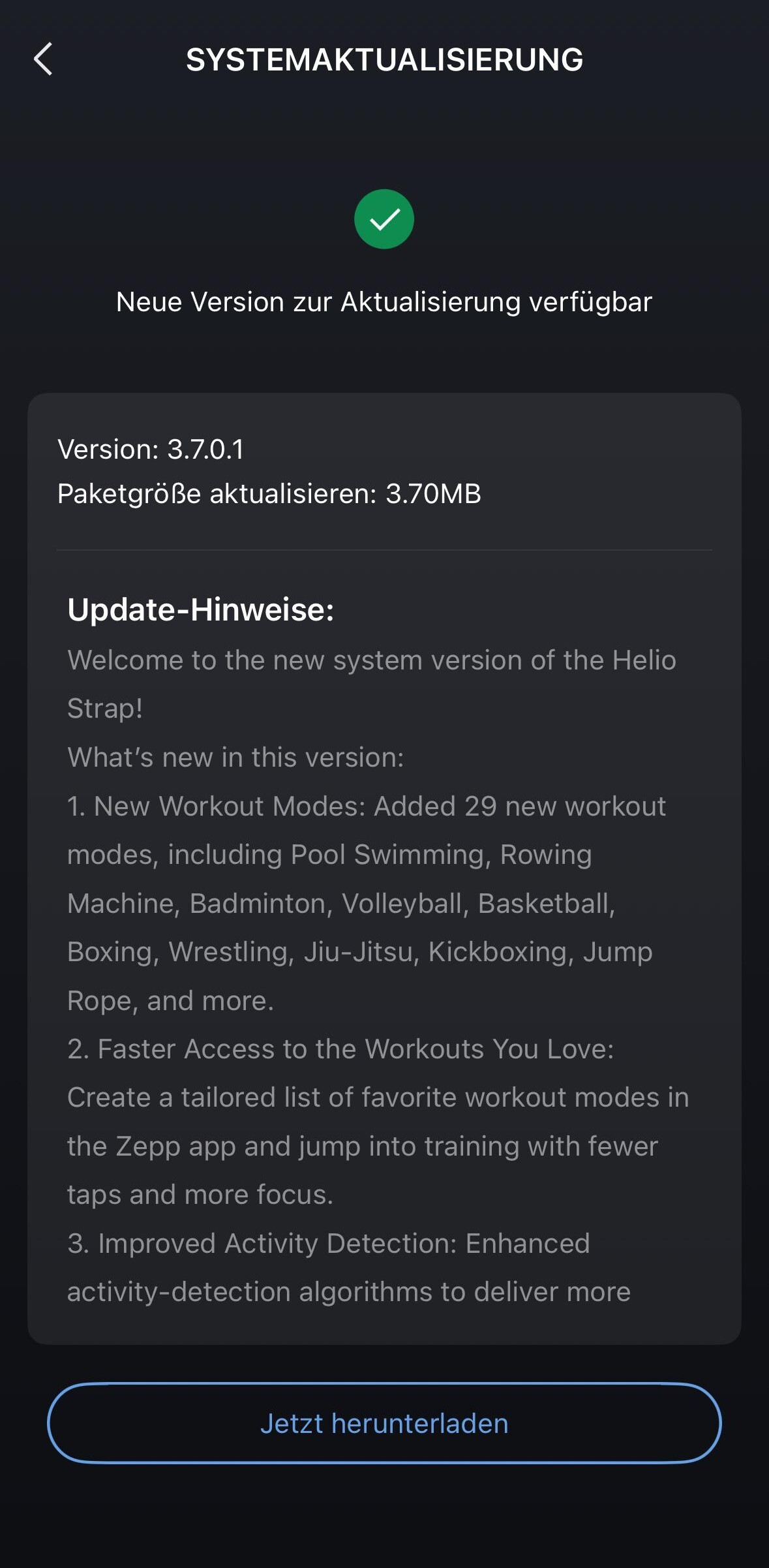 Denna version 3.7.0.1 verkar rullas ut i faser till användare av Amazfit Helio Strap(för närvarande 99,00 USD på Amazon). Den har redan nått vissa användare i länder som USA och Tyskland, men när den kommer att vara tillgänglig för alla är oklart. Som vanligt kommer uppdateringen att installeras via Zepp smartphone-appen.