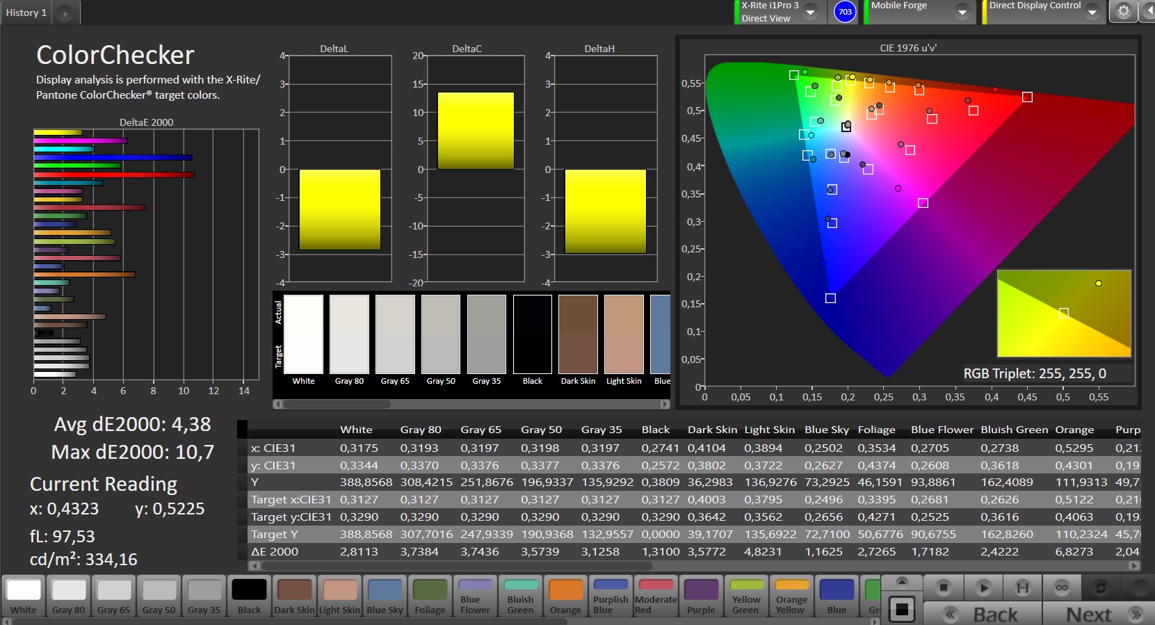 ΔE ColorChecker Calman: 4.38 | ∀{0.5-29.43 Ø4.78}