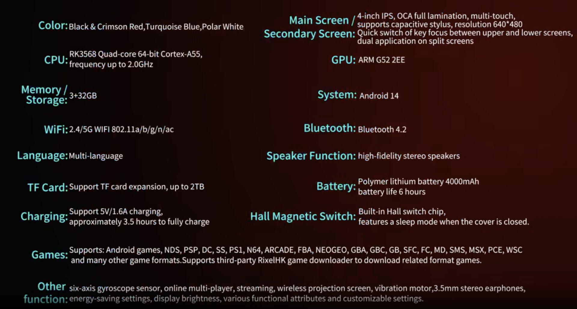 Utöver det rapporterar listningen att RG DS kör Android 14 med Bluetooth- och Wi-Fi-anslutning, men för ett startpris på $ 108,99 som så småningom kommer att nå $ 114,99. Tidiga lanseringserbjudanden kan dock sänka RG DS under $ 100, som tidigare angivits.