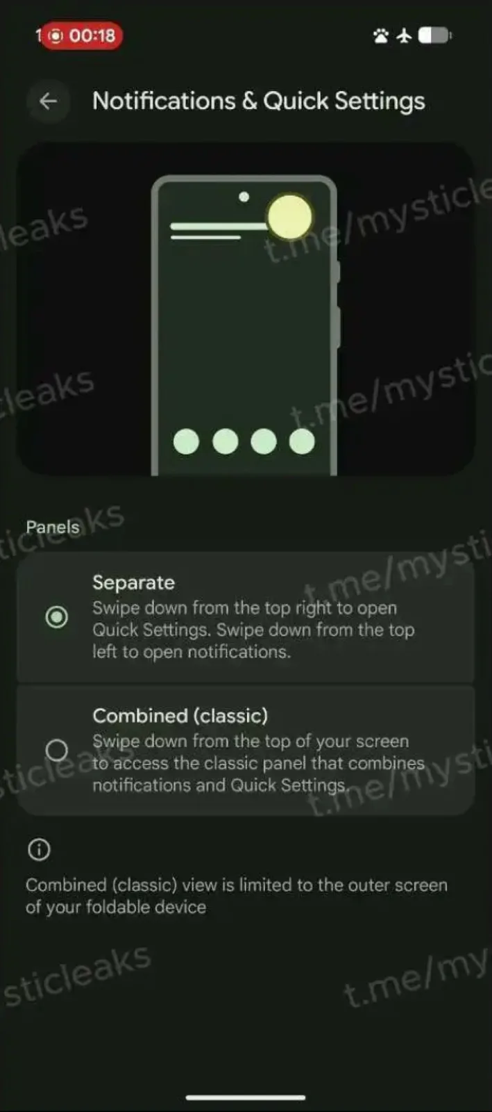 Enligt dessa skärmdumpar kommer Android 17 endast att visa snabbinställningar som standard när du sveper ner från det övre högra hörnet av skärmen. Om man däremot sveper nedåt från skärmens övre vänstra hörn visas notiser. Detta är redan bekant från Apple iPhone 17. Användare som inte gillar den här förändringen kan byta tillbaka till det välbekanta användargränssnittet Android i systeminställningarna, som kombinerar snabbinställningar och aviseringar på en enda skärm