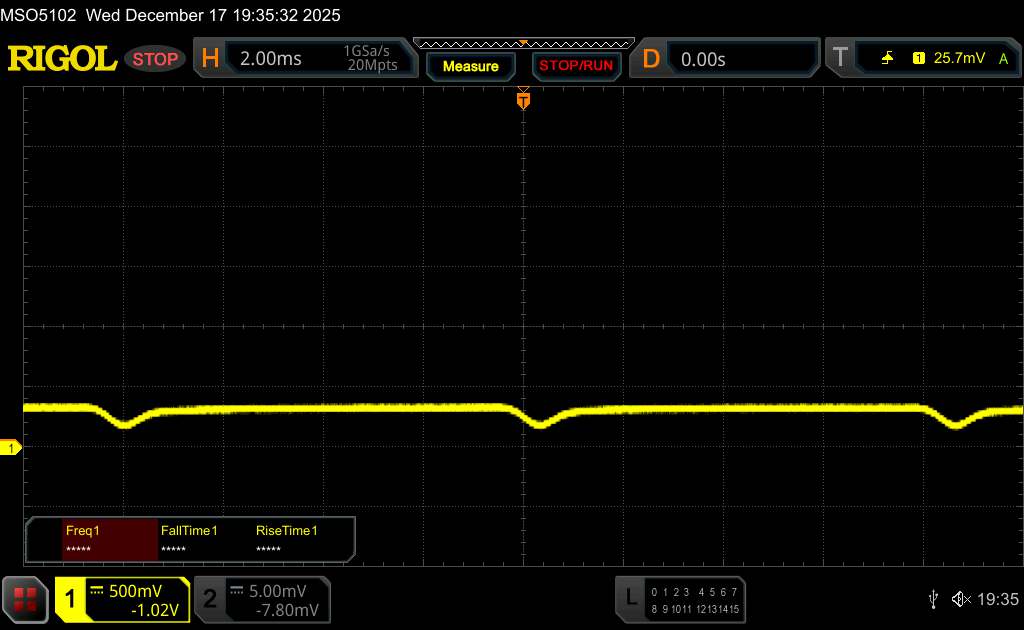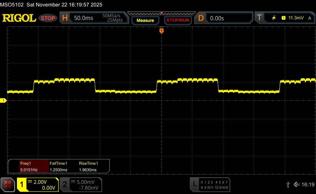 Eftersom detta är en OLED-panel styrs ljusstyrkan via pulsbreddsmodulering. Enligt tillverkaren använder iQOO 15 högfrekvent PWM-dimning vid 2 160 Hz för att minska potentiella negativa effekter som synligt flimmer. Våra mätningar med Rigols programvara visar en basfrekvens på cirka 560 Hz.