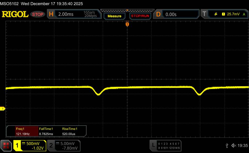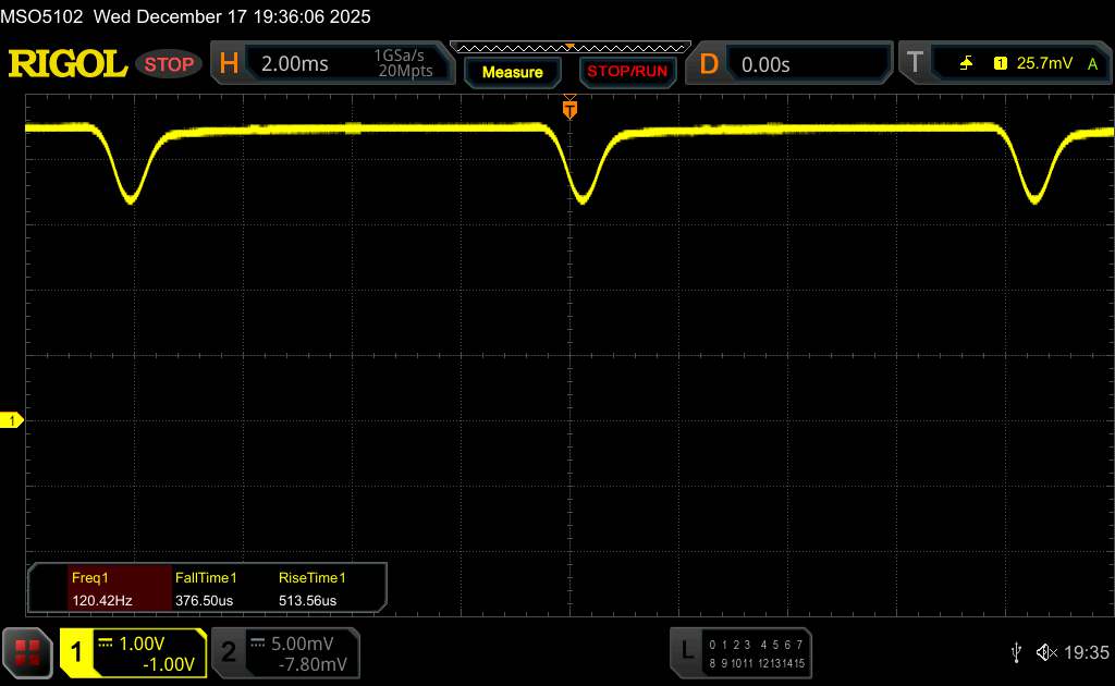 | Skärmflimmer / PWM upptäckt | 561.3 Hz Amplitude: 19 % | ||