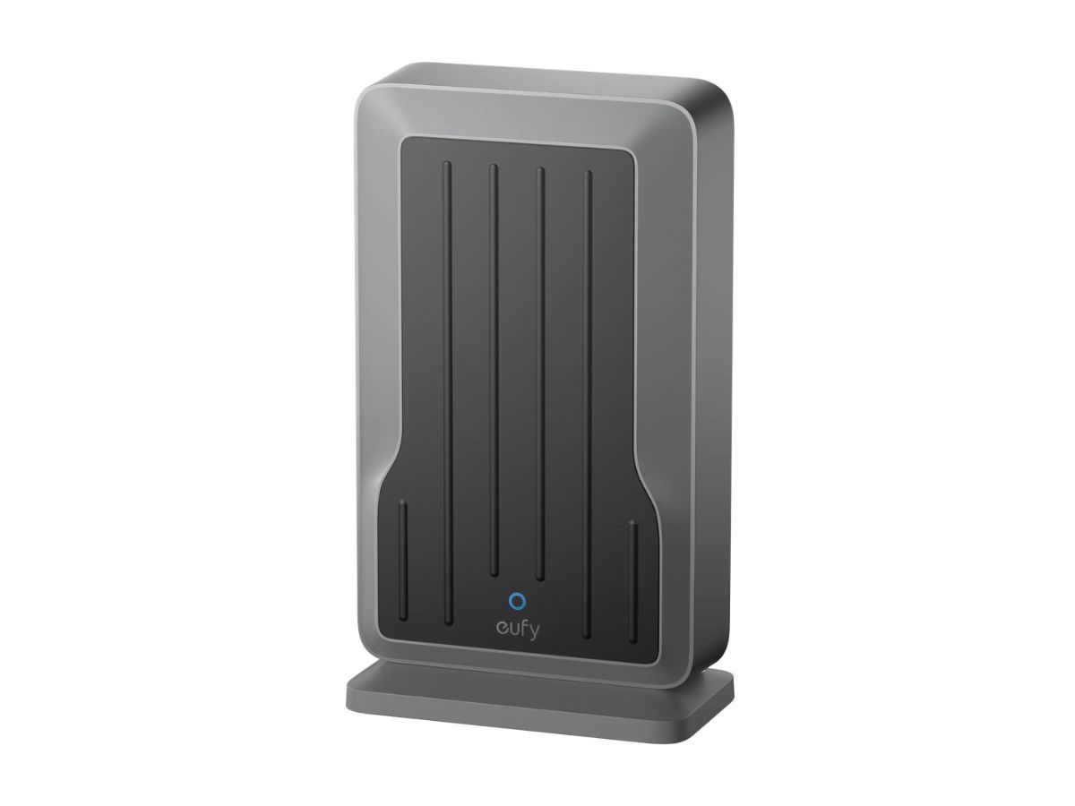 Eufys Wi-Fi-modul kan placeras på ett skrivbord eller monteras på en vägg. Tillbehöret från Anker-undervarumärket kallas också eufy WLAN-modul och har modellnummer T8709. Den har en mörkgrå metallfinish och verkar mäta 3,18 x 1,73 x 5,53 tum (~ 80,8 x 43,9 x 140,5 mm).