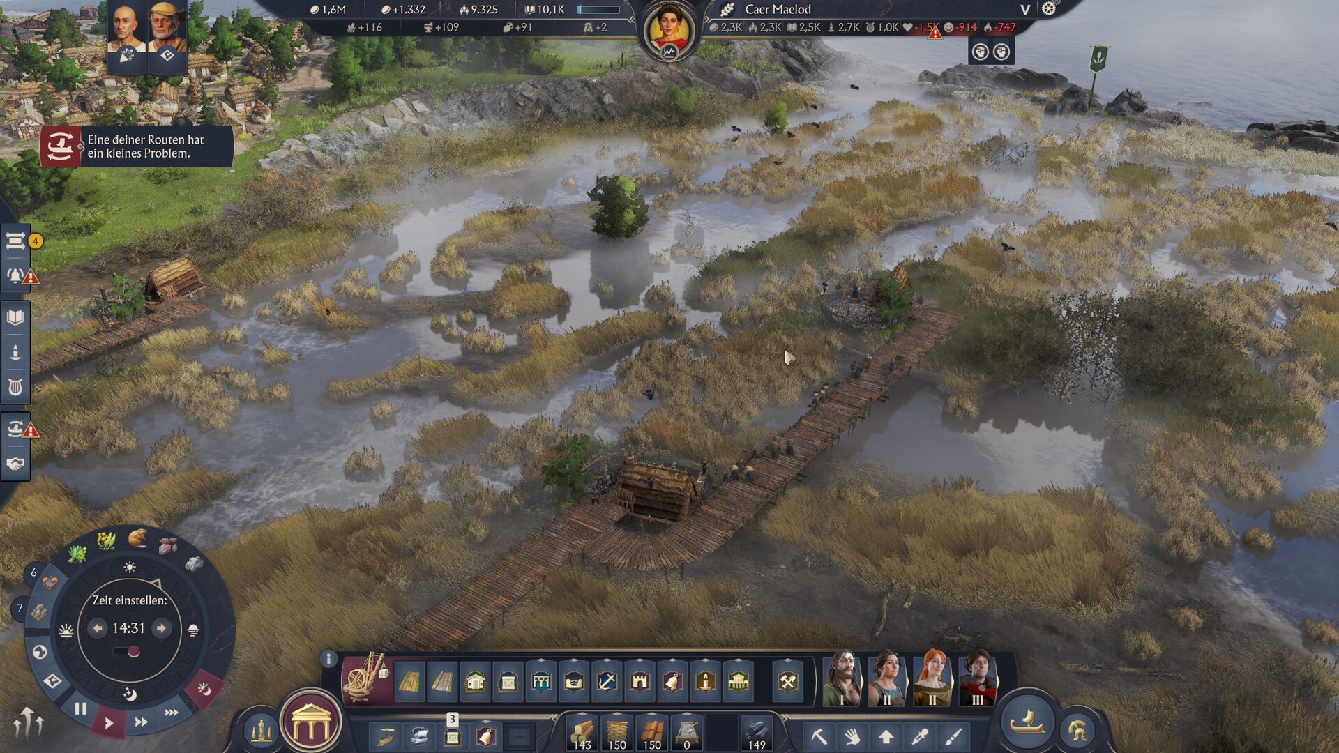 Spelarna informeras omedelbart om att Albion är den mer utmanande startregionen, vilket vi i allmänhet kan bekräfta. Att börja i Albion är dock inte exakt en oöverstiglig utmaning även för nybörjare. Med det sagt innebär träskområdet en ganska ovanlig spelmekanik. Vissa varor, som till exempel ål, kan bara produceras i detta träsk, som alternativt kan dräneras tack vare forskningsbara teknologier för att få värdefull byggmark, särskilt i Albion.