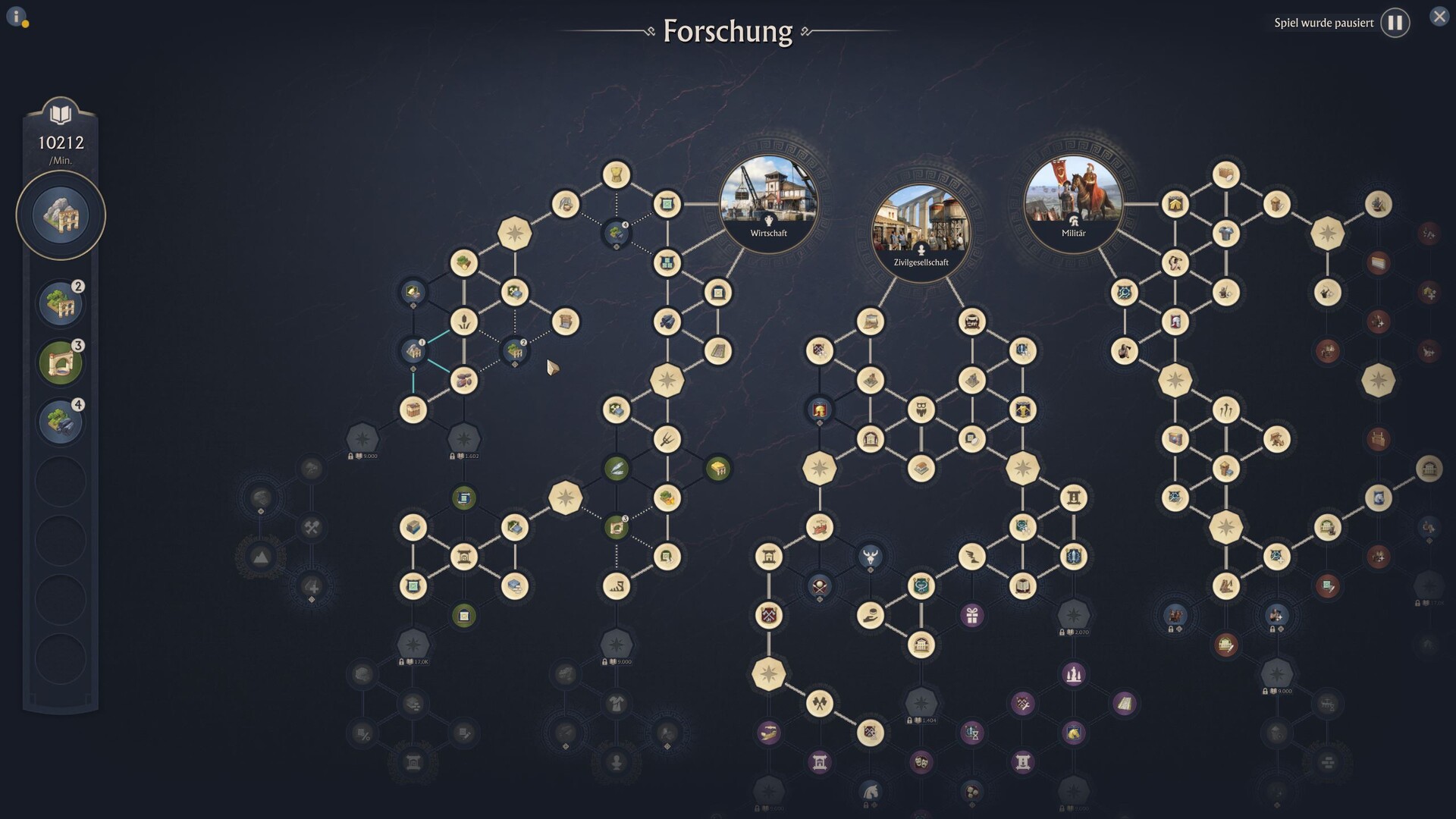En annan kraftfull ny spelmekanik är forskningssystemet. Det är viktigt redan från början och ger bland annat tillgång till uppgraderingar av byggnader och alliansalternativ. Forskningsträdet är indelat i tre grenar, nämligen ekonomi, civilsamhälle och militär. Avancerade teknologier är starkt knutna till milstolpar. Förutom att generera en viss mängd kunskap måste spelarna också uppfylla specifika krav, till exempel att bygga flera gruvor eller akvedukter eller nå vissa befolkningsnivåer.