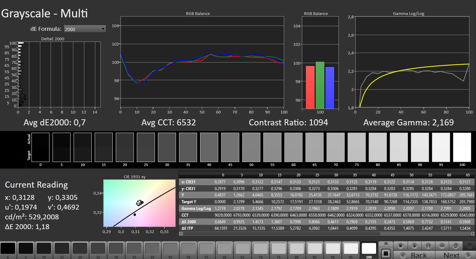 ΔE Greyscale Calman: 2.9 | ∀{0.09-98 Ø5}