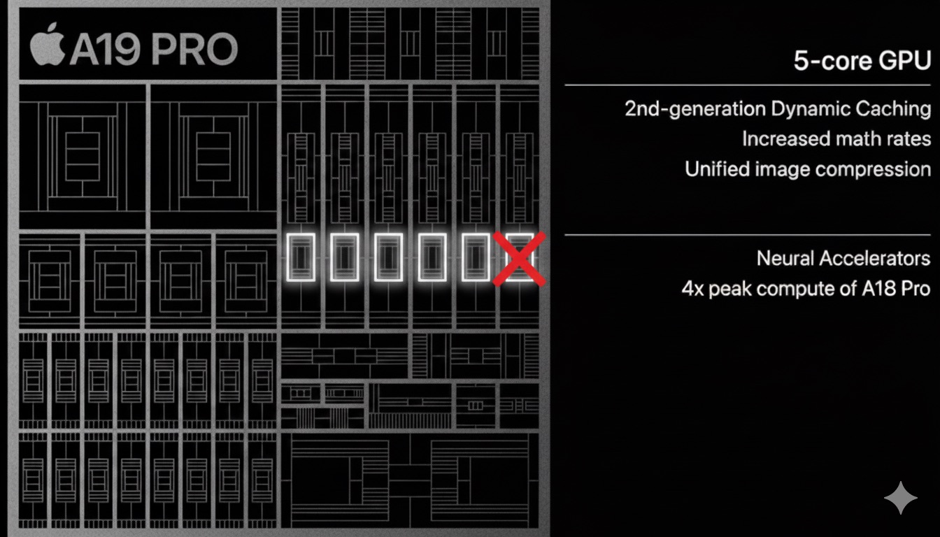 Den långsammare A18 GPU har inte bara 1 kärna mindre; den måste också nöja sig med äldre skärmmotor och videokodare/avkodare.