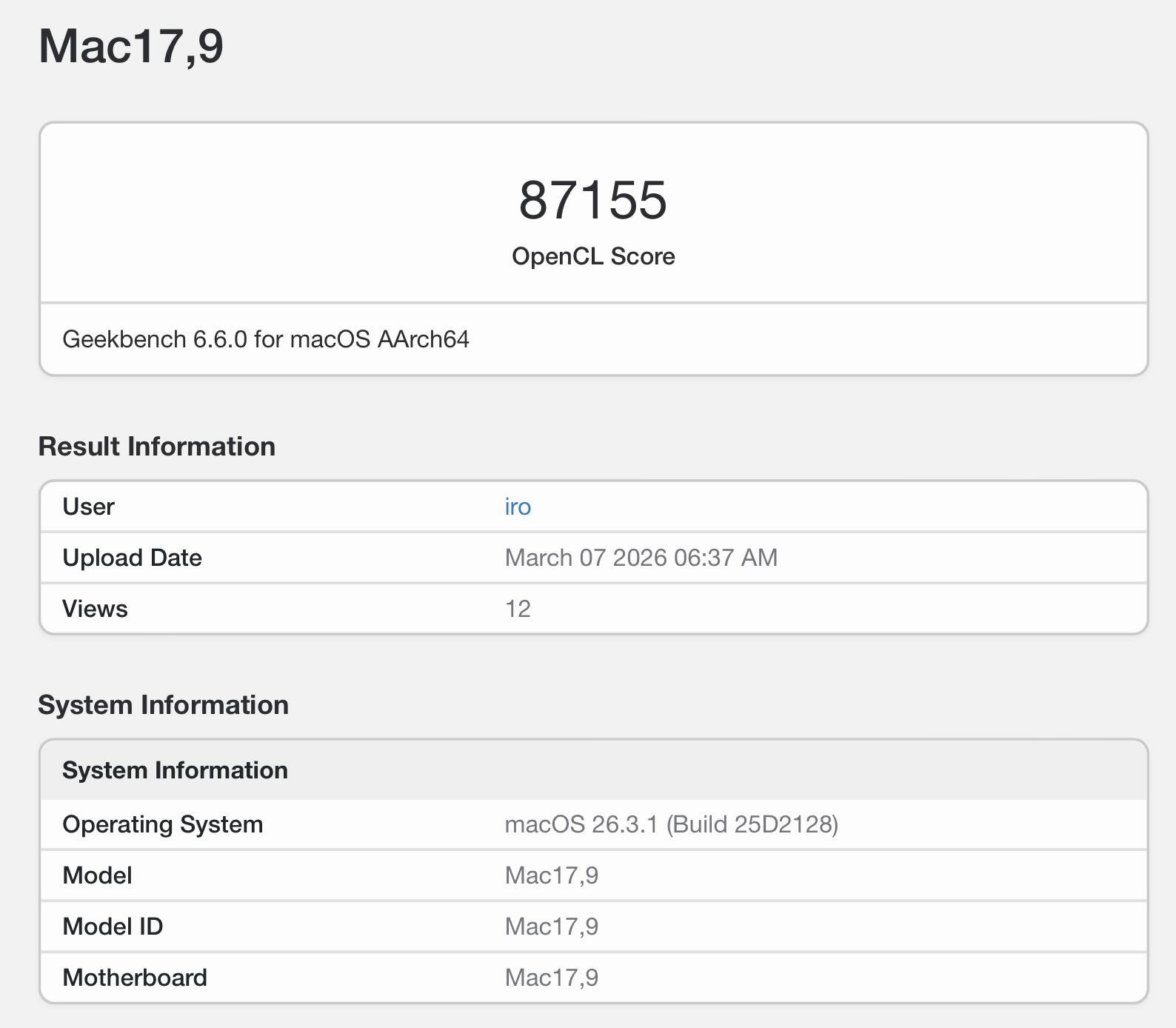 Nu har M5 Pro dykt upp i samma benchmark och fick imponerande 141 000 poäng i Metal-testet. I OpenCL, som avskrivits på macOS för över 6 år sedan, lyckades M5 Pro få ihop ungefär 87 155 poäng. Med tanke på att SoC:n har hälften så många GPU-kärnor som M5 Max är resultaten i linje med vad man kan förvänta sig.
