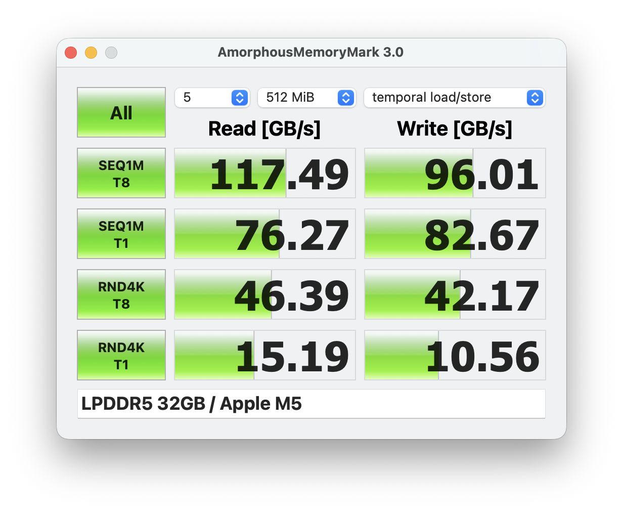 Den nya Apple M5 SoC är mycket kraftfull och samtidigt mycket effektiv - en perfekt matchning för det passiva kylsystemet i MacBook Air 15. Det finns helt enkelt inget jämförbart i Windows-världen, varken med x86-chip eller med ARM-processorer från Qualcomm. Prestandan är inget annat än spektakulär och M5 är också mycket effektiv när du spelar, där vi inte upplevde någon strypning. Det betyder att den tunna och tysta MacBook Air kan spela även krävande titlar som Cyberpunk 2077 eller Baldur's Gate 3 smidigt med reducerade detaljer.