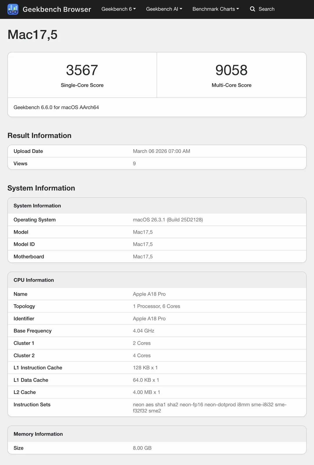 På samma sätt indikerar CPU-prestanda med flera kärnor att MacBook Neo är marginellt mer kraftfull än MacBook Air M1. Å andra sidan är ett single-core-genomsnitt på 3 530 nästan 50% högre än samma MacBook på 2 363 poäng. Avsändning, Apple M2-drivna MacBooks, den A18 Pro till att MacBook Neo får cirka 12,7 % mer poäng än till och med den aktivt kylda MacBook Pro 14 M3. Faktum är att MacBook Neo hamnar precis bakom Apple:s M4-generationsenheter i arbetsbelastningar med en enda kärna. Vänligen se vår artikel om lanseringen av MacBook Neo för mer information om Apple's $599 MacBook.