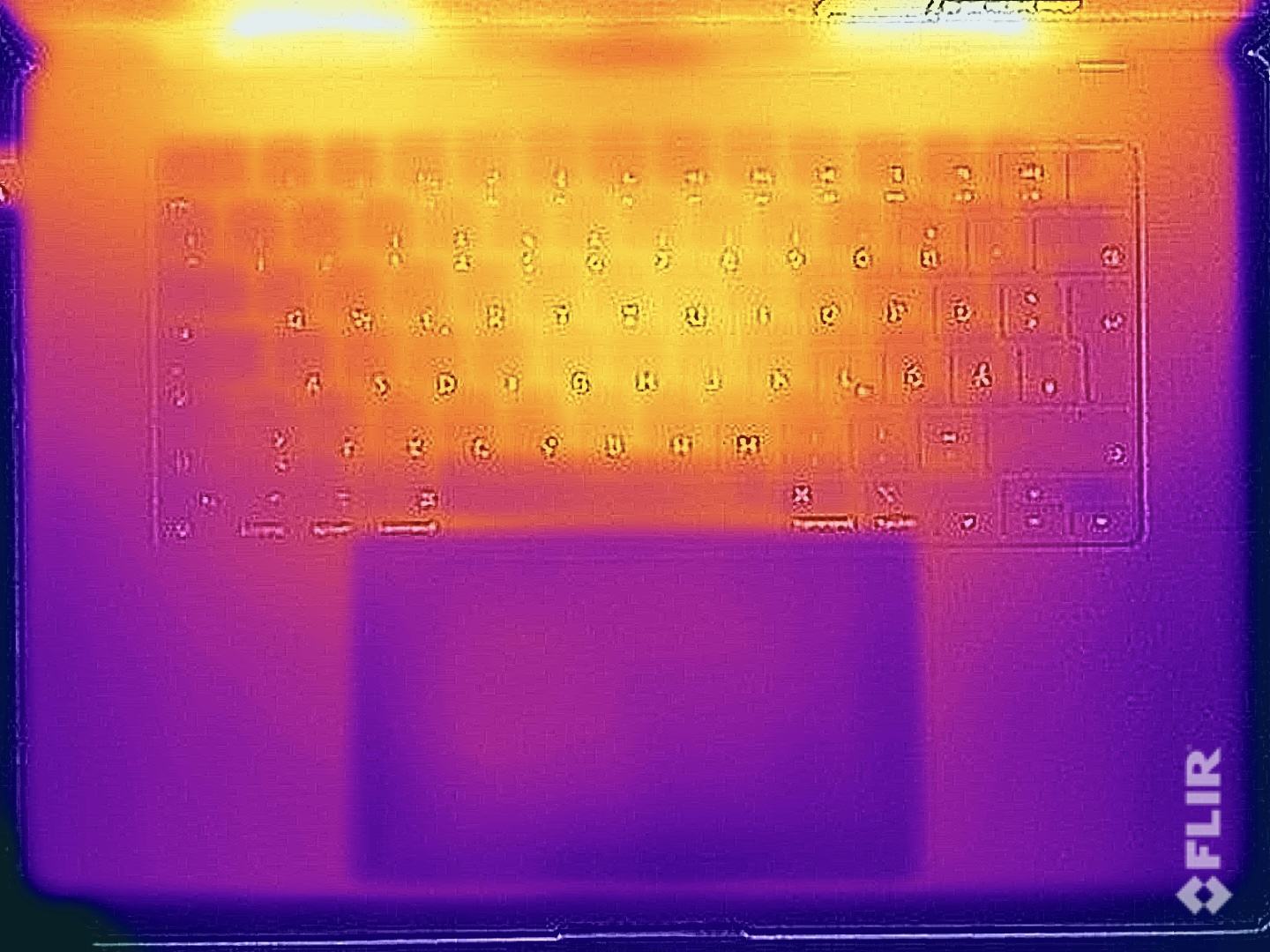 Problem med höga temperaturer förblir främmande för MacBook Pro 16 med M3 Pro. Med mindre krävande uppgifter värms inte höljet upp alls. Under stresstestet nådde yttemperaturerna knappt 37 till 38 °C (99-100 °F) på de varmaste platserna, på grund av den ökade fläktaktiviteten. Det värsta scenariot representeras av spel när fläktarna vanligtvis körs med 1 400 till 1 900 rpm, men även här ger ett maximum på 42 °C (108 °F) absolut ingen anledning till oro. 140-wattsladdaren uppnår en maximal temperatur på 45 °C (113 °F).