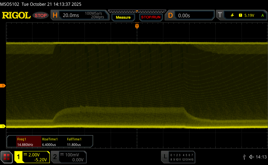 | Skärmflimmer / PWM upptäckt | 14900 Hz Amplitude: 90 % | ||