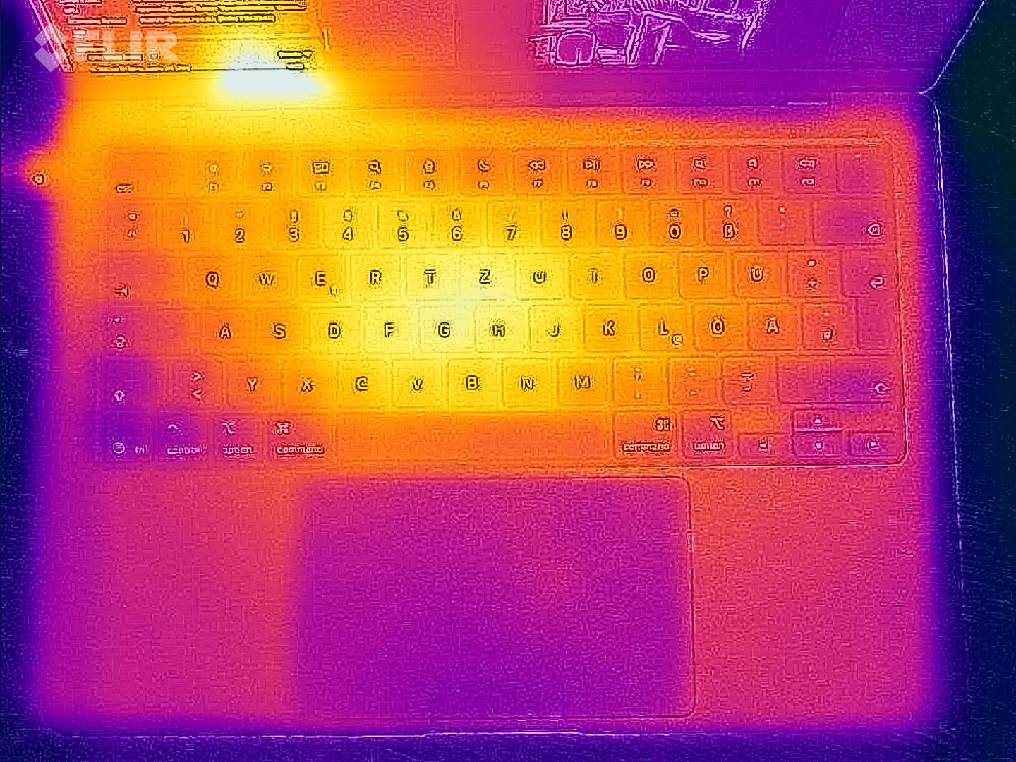 Den bärbara datorns strömförbrukning i viloläge har minskat något jämfört med föregångaren, och ~11 watt är ett bra värde med tanke på den höga ljusstyrkan. Vi noterade inga överraskningar under belastning heller. Vi testade MacBook med 70-watts nätadaptern, som i slutändan var tillräcklig. Köpare av den nya MacBook Pro M5 bör dock notera att Apple nu säljer enheten utan nätadapter; endast en MagSafe-kabel ingår i leveransen.