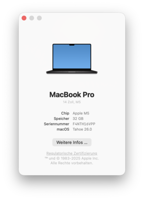 | Apple MacBook Pro 14 2025 M5 Apple M5 (10 Cores) ⎘ Apple M5 GPU ⎘ 32 GB Minne, 1024 GB SSD | Amazon: 1. $1,999.00 Apple 2025 MacBook Pro Lapto... 2. $19.96 BlueSwan Anti-Cracking Hard ... 3. $2,189.13 Apple 2024 MacBook Pro Lapto... Listpris: 2739€ | 1.5 kg | 15.5 mm | 14.20" 3024x1964 254 PPI Mini-LED | |