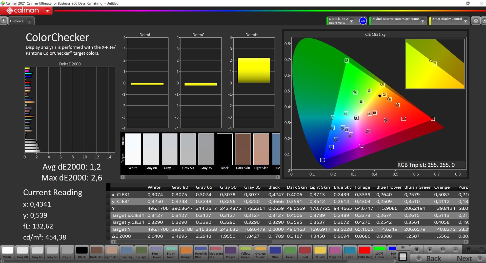 ΔE ColorChecker Calman: 1.2 | ∀{0.5-29.43 Ø4.78}
