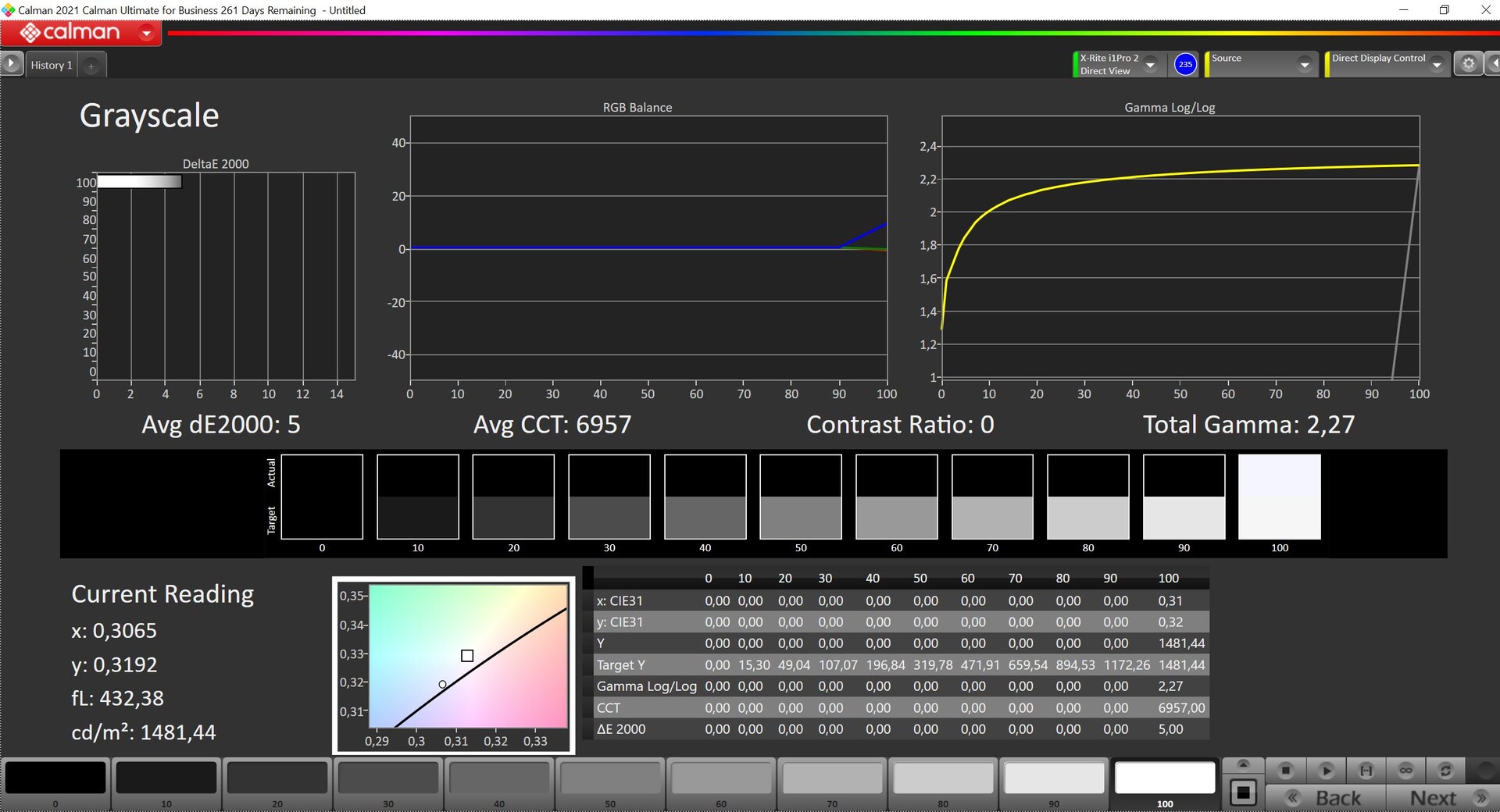 ΔE Greyscale Calman: 1.7 | ∀{0.09-98 Ø5}