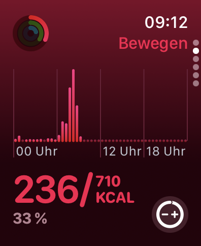 Apple erbjuder två inbyggda appar för iPhone, Apple Health och Apple Fitness, för att följa upp aktivitetsmål. Båda apparna, tillsammans med själva smartklockan, visar aktivitetsförloppet med hjälp av välbekanta ringar som visar kaloriförbränning under rörelse, träningstid och tid som tillbringas stående. Användarna har möjlighet att anpassa sina mål.