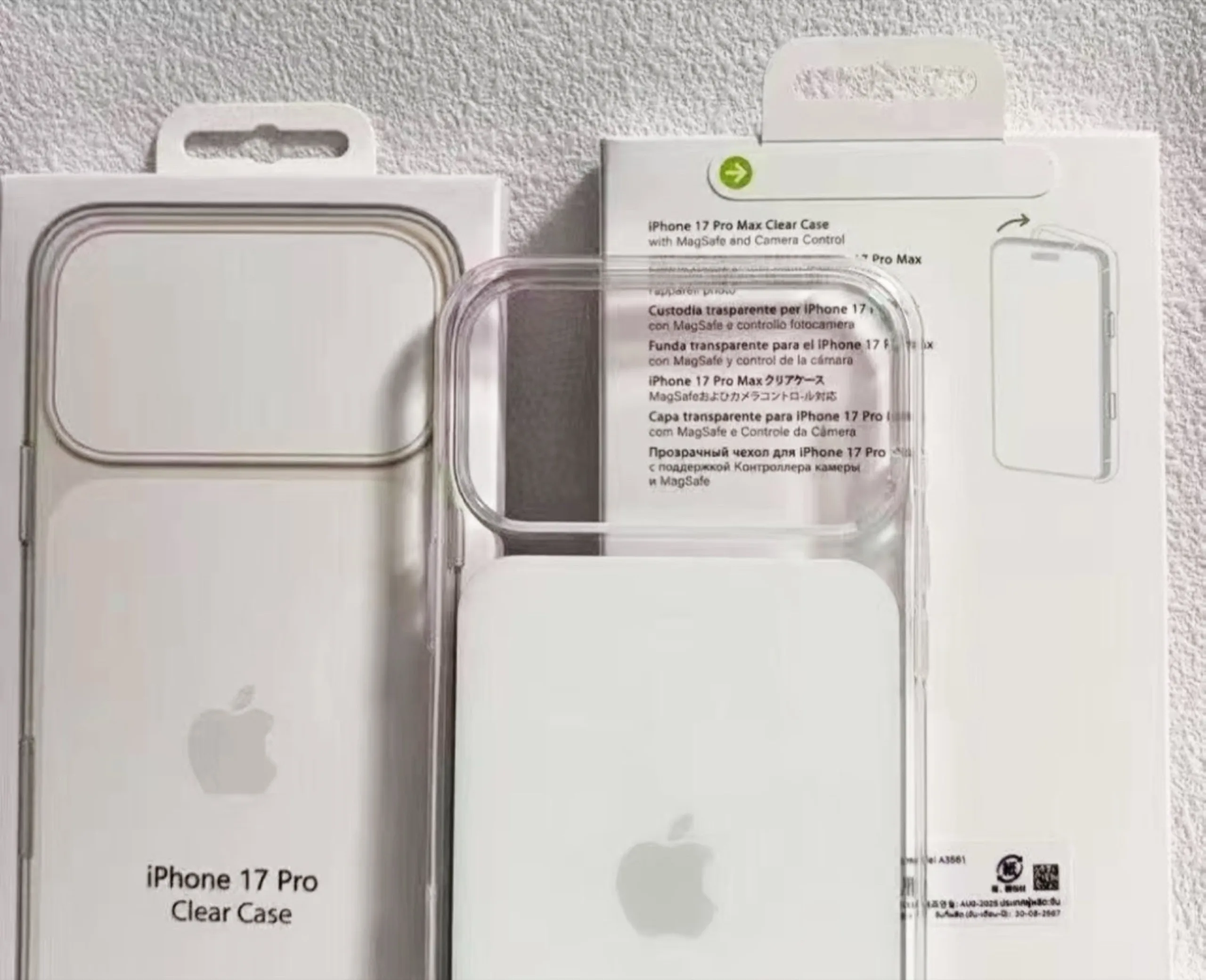 För det första är öppningen för kamerorna betydligt större för att ge plats åt den utökade kameramodulen. För det andra är Clear Case inte längre helt genomskinligt. Istället är området under kameramodulen vitt, åtminstone i en variant. Detta är tänkt att centrera Apple -logotypen i detta område, även om den kommer att placeras lägre än på iPhone 16. Läckan tyder dock på att denna förändring endast gäller Clear Case för de två Pro-modellerna
