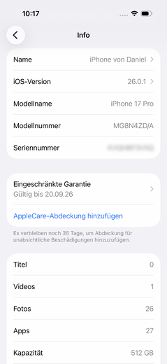 IPhone 17 Pro är fortfarande utrustad med ett nano-SIM i Tyskland och kan också använda ett eSIM. Alternativt är det också möjligt att använda två eSIM, och VoLTE och Wi-Fi-samtal stöds också.