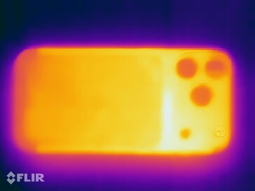 Yttemperaturerna på iPhone 17 Pro förblev säkra hela tiden och steg bara ibland över 40°C under stresstesterna.