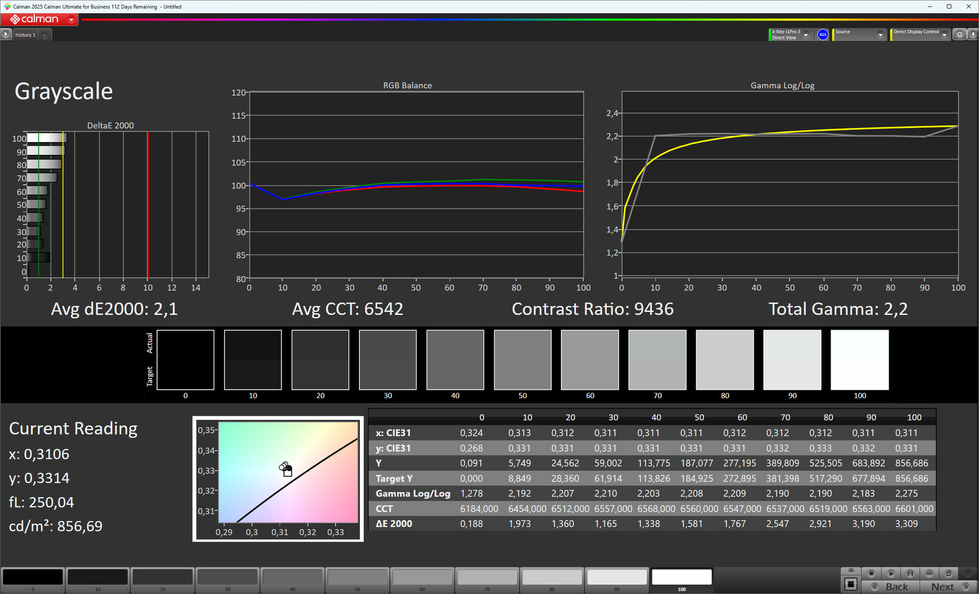 ΔE Greyscale Calman: 2.1 | ∀{0.09-98 Ø5}