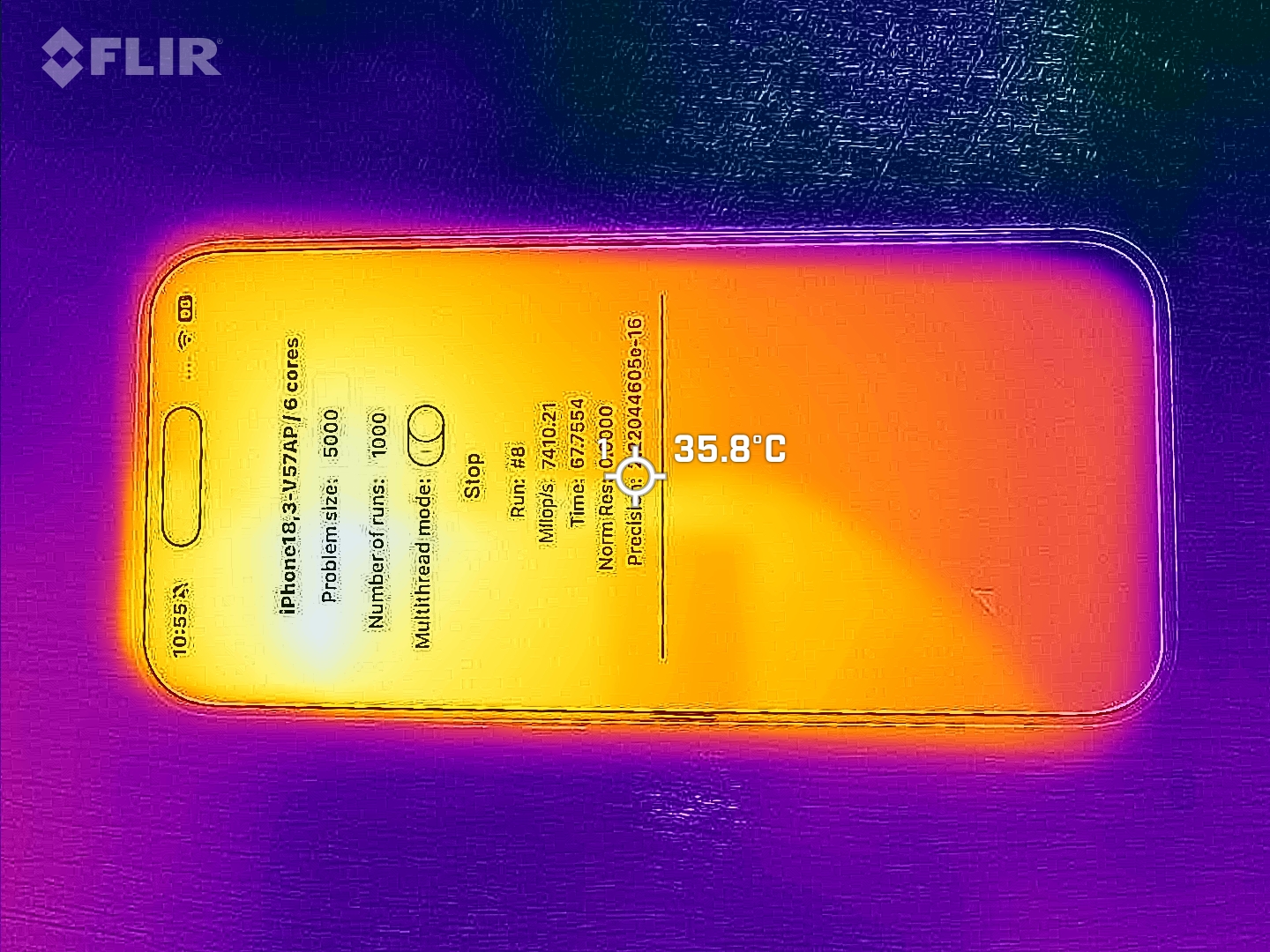 Med yttemperaturer på upp till 43,3 °C förblir iPhone 17 svalare under belastning än iPhone 16. I 3DMark-stresstesterna tappar dock testapparaten en tredjedel av sin maximala prestanda. Även här är iPhone 16 en aning mer effektiv.