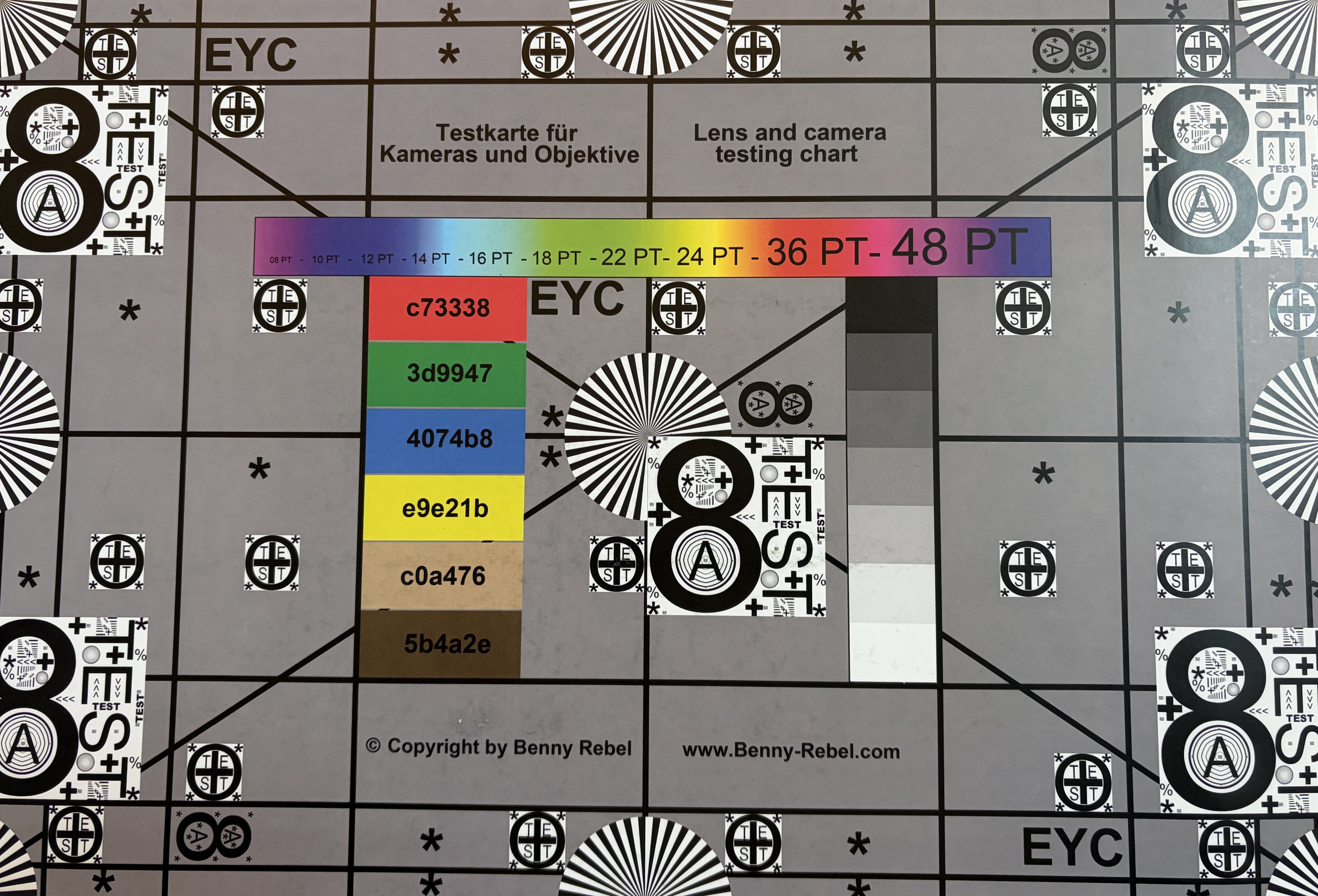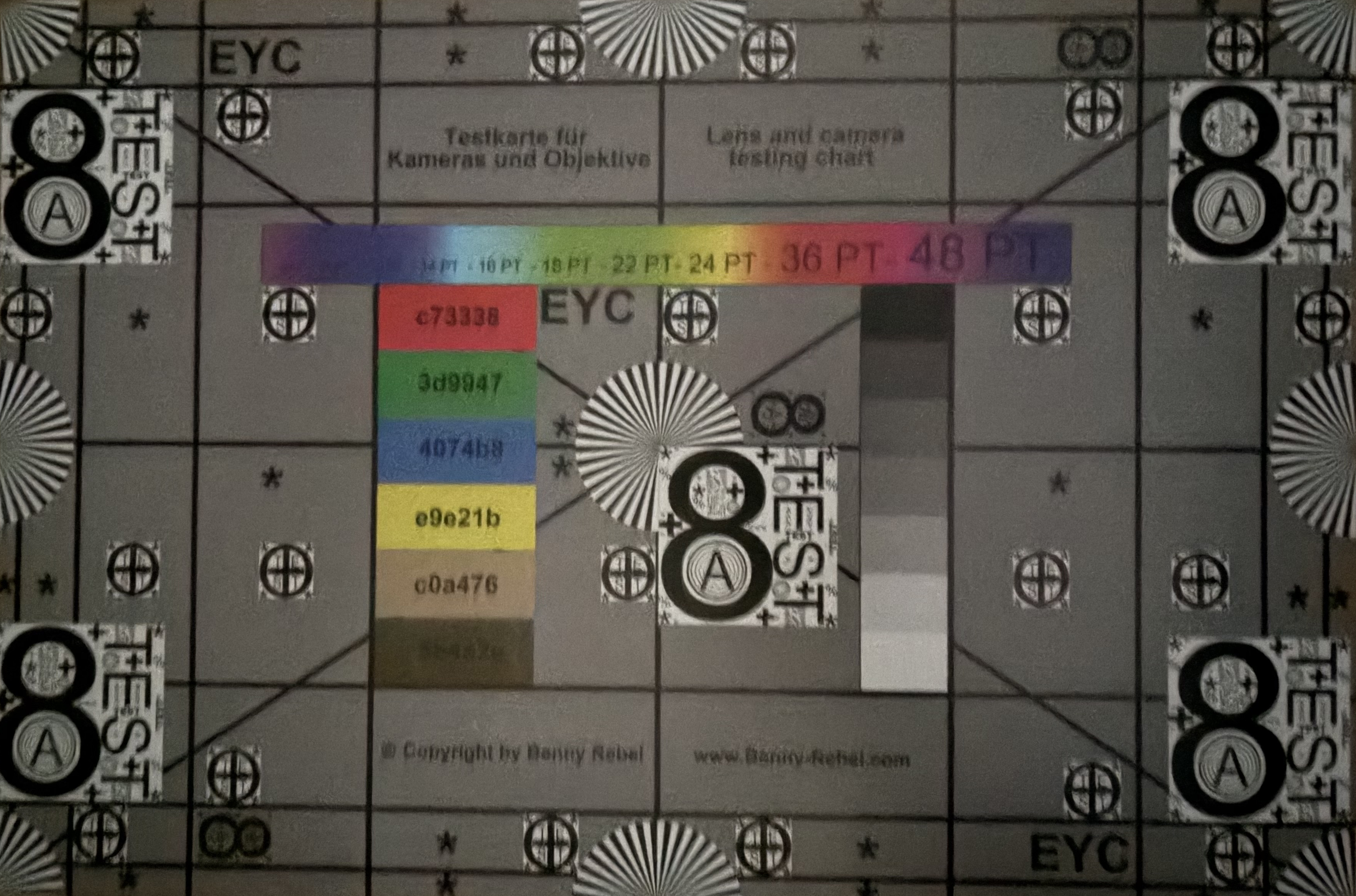 Main cameraMain cameraUltra wide-angleLow lightUnder kontrollerade ljusförhållanden visar huvudkameran återigen att den kan visa färger exakt. Testdiagrammet är fortfarande mycket tydligt igenkännbart även med bara 1 lux restljus och fångas ganska skarpt, något som knappast någon annan smartphonekamera kan uppnå.