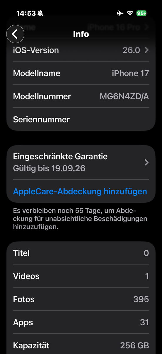 IPhone 17 har bara ett 3,7 procent större batteri än iPhone 16men uppnår märkbart längre batteritid. I det realistiska WLAN-testet räcker den i 20 timmar, och när man spelar upp en HD-video i en kontinuerlig slinga räcker den till och med nästan 30 timmar.